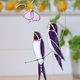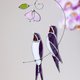 - The bird measures 4 x 8 cm. The size with the branch is 16 x 24 cm. The figurine is made of stained glass. It can be hung in a window. A hook is included.