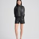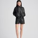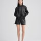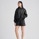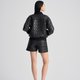 - The simple tailoring and slightly umbrella-shaped above-the-knee shorts are visually handsome and neat and can perfectly show off the leg lines. They are made of black cotton fabric embossed with circle graphics, which is low-key yet distinctive.