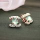 [Name] Luminous glass jade egg-shaped earrings 925 sterling silver