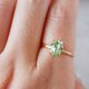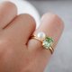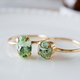 - A delicate, small oval ring made with Swarovski crystals. The crystal stone used is chrysolite. It has a soft, bright green color like young leaves, and is a gentle green color that goes well with other colors. It is also recommended for stacking.