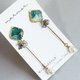 Delicate and expressive, these teal earrings feature hand-poured alcohol ink art resin in a gold-framed organic shape. Embellished with shimmering Czech glass beads and glossy pearl drops, they bring movement and charm to every outfit.