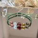 - The grass-green cord forms the verdant embrace of a wreath, while the red aventurine and strawberry quartz resemble blooming little fruits. Moonstone acts as gentle points of light, suspended among the leaves, and citrine and smoky quartz are like a scattering of colorful golden light bulbs. The entire bracelet is understated, yet it brings an instant smile upon first glance. As if someone is whispering in your ear, "May this winter find you enveloped in happiness."