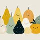 "Happy Orchard" transforms a fruit platter into a collection of smiling companions: pears, oranges, avocados, and kiwis stand in a row, some with eyes closed in a gentle nap, others peeking at you, as if inviting you to "Let's eat fruit together!" The warm yellows, oranges, and deep greens paired with a creamy background create a fresh, pleasing visual. Whether placed by the dining table, above a sideboard, or in a child's room, it instantly adds a touch of joyful atmosphere.