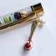 The spoon is topped with a cherry that looks like a topping. The bright red cherry on top of the whipped cream is adorable and makes for a perfect accent♪