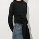 Featuring a continuation of the faux two-piece design, this knit is crafted from a delicate and soft wool blend, offering a moderate thickness perfect for wearing alone or as a layering piece. The basic, minimalist silhouette has a slightly relaxed fit, exuding a low-key yet sophisticated vibe. The fabric panel on the back creates a faux two-piece effect, and the tie can be worn around the waist or draped over the shoulders, effortlessly creating a stylish look that pairs well with various bottoms.