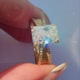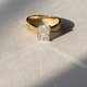 The main stone features a Radiant cut diamond, meticulously crafted to capture light and shadow with its dimensional facets. Sharp lines and a soft halo intertwine, imbuing every refraction with confidence and elegance.