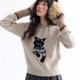 [Creates a stylish and wearable autumn/winter piece with a playful cat motif, evoking beautiful moments of comfort]
