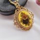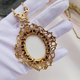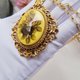 The exquisite Victorian carved frame is decorated with a butterfly-like pendant head, and the porcelain with a yellow bottom in the middle is printed with a rose figure, which is classic and elegant