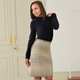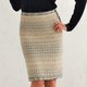 The basic fabric is made in beige colors. Small “drops” of lurex, sequins and yarn of different colors, matching the color of the trim, are added to the beige. The skirt is buttoned with the snap closures on both sides, which help to adjust the waist.