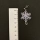 We experimented with shapes, weaving methods, and thread thickness to achieve the perfect snowflake appearance. Light gray thread is used, accented with six metal beads, and a transparent drop-shaped bead is woven below the motif.