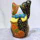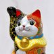 Japanese Kutani ware Maneki-neko (Lucky Cat) - Red and Black with Splendor, Size 3.7