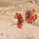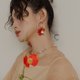 - MUCHAT Exclusive Handmade | 14KGP Pearl Red Flower C-Hoop Sterling Silver Post Earrings (Overall 6.5*4.2cm)