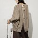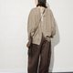 Generous cocoon sleeves with segmented cuffs create a sense of space with their voluminous form. The inherent rustic charm of linen, enhanced by the artistic touch of stripes, complements the oversized silhouette for a look that is effortlessly relaxed, simple, natural, and imbued with an Eastern spirit.