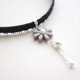 This elegant pendant features a rich blue background with flowers and pearls, accented by glitter and white lines. The sharp square shape slims the neckline. The deep navy color is perfect for the autumn and winter seasons.