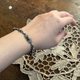 - This exquisite European antique sterling silver bracelet features delicate scroll filigree work. Each link is meticulously handcrafted and set with several warm-toned pink rhodonite gemstones, creating a striking contrast against the oxidized silver. For added security, the bracelet is fitted with a safety chain, which prevents the piece from being lost if t