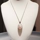 - This delicate necklace features a soft pink rose quartz stone, crafted into a three-dimensional oval pendant and adorned with a charming Shima-enaga, a beloved fluffy white bird from northern Japan. To enhance the natural beauty of the stone, I use 24K genuine Kanazawa gold leaf (“Hakuichi”), made through a traditional craft with over 400 years of history.