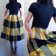 - Vintage Wool linen check plaid skirt with pocket , Classic Check Houndstooth skirt Label : INÉD Tag size : 9 ( Japan ) Small size Made in Japan Color : Yellow , Black