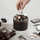 - Featuring a patented magnetic rotation mechanism, the lid opens and closes smoothly with just one finger—perfect for stress relief with a satisfying twist. Its unique funnel structure fits coins from around the world, allowing for quick and easy drop-in. Crafted with a warm-touch beech wood lid and a sturdy aluminum alloy body, it offers both refined texture