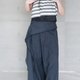 Crafted from a high-quality cotton-linen blend fabric sourced from Japan, these wide-leg pants offer a breathable and naturally textured feel. The bold pleats create a voluminous, relaxed silhouette that moves effortlessly with the body. Featuring a functional back pocket and a freely moving tie detail with a pendant accent, the design adds subtle motion and personality. Raw-edge finishing enhances its organic, laid-back aesthetic—an ideal piece that balances comfort with distinctive style.