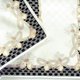 Soft ivory tones contrast with a black monogram background, creating a refined and timeless look.