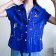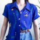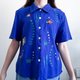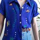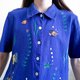 - Vintage blue animal embroidered linen rayon shirt , Fish embroidered shirt Label : ULTRA DRESS Made in China