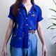 Vintage blue animal embroidered linen rayon shirt , Fish embroidered shirt