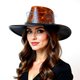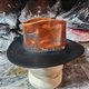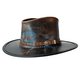 This listing includes two stunning variants—a rich distressed dark brown hat and a two-tone design featuring a tan crown with a black brim.
