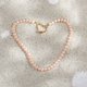 - 7-8mm natural pink freshwater pearl necklace with delicate heart clasp, handmade with elegance. Perfect as wedding jewelry, gift for bride, bridesmaid, birthday or Mother’s Day.