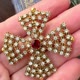 This glamorous pin is intricately designed in a dimensional four-pointed Maltese cross shape. The brooch is covered with bright and shimmering clear crystals.