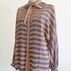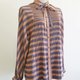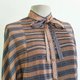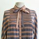- Vintage Blue Brown Striped Bow Tie Blouse