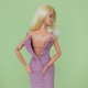A night gown dress is for the Barbie doll, which is decorated with a bow. The dress is made from one piece, the edges of which are attached to each other in the back up the waist line and then is buttoned with metal snap fasteners.