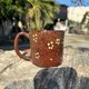 - A custom-blended glaze forms the base, adorned with hand-carved patterns and finished with hand-painted details, making each mug a unique piece.