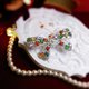 • Every stone is top-grade, clean, with excellent color, texture, and shape. The colors are stunningly vibrant, like natural pastel hues. This exquisite Japanese-inspired bow design adorned with full diamonds is incredibly beautiful and incredibly fashionable. The price of silver has risen significantly, even surpassing gold, and the silver setting alone costs over 2,000 units!