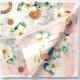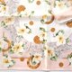 The soft pastel pink background enhances the gentle tropical flowers, creating a refined balance between femininity and classic European elegance.