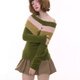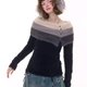 - ziziFei Autumn/Winter New Collection: American Retro Design Contrast Stripe Off-the-Shoulder Plush Knit Top for Women
