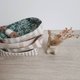 .A small fabric dish, approximately 10cm in length and width.