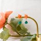 - A pair of earrings made with real osmanthus flowers, carefully crafted by hand. They are paired with deep green natural stone green onyx, creating a striking contrast between orange and green. The compact size makes them easy to wear daily and perfect for adding a small pop of color to your outfit.