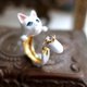 **Hand-painted three-dimensional cat ring plated with 9K real gold, non-fading, non-oxidized Stone light jewelry, adjustable size**