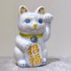 Japanese Kiyomizu ware Maneki-neko (Lucky Cat) - Floral Crystal Glaze, Wisteria, Left Side, Extra Small