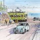 - A drive in a classic car near the level crossing at Kamakurakokomae Station on the Enoden line.