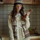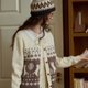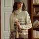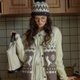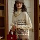 - Giana SR Exclusive Cat Snowflake Jacquard Crew Neck Fair Isle Knit Cardigan (with Scarf)