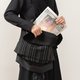 - Dusk Page Retro Double Layer Foldover Crossbody Bag / Striped Large Capacity Shoulder Bag
