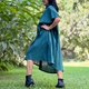 A stand collar with coconut shell buttons and a subtle high-low hem give it a modern bohemian twist — equally stylish for lounging at home, strolling through markets, or pairing with boots and a tote for a cozy autumn look.