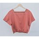 - Square Neck, Short Sleeve Top in Terracotta Hand-embroidered
