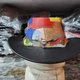 The crown of the hat is made from high-quality faux leather, carefully arranged in a vibrant patchwork design. Each panel features a different tone and grain effect, giving the look of mixed leathers while remaining lightweight, durable, and cruelty-free.