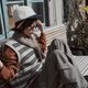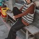This striped knit vest evokes a heartwarming Japanese drama vibe—