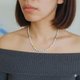 The Moon Veil short necklace features a grey and white design, exuding an elegant aura whether paired with summer attire or crisp white tops.