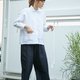 - Linen Long Sleeve Peter Pan Collar Shirt - White Color