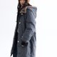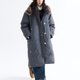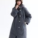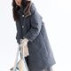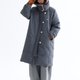 - A longline down jacket featuring a detachable hood. This relaxed, slightly A-line silhouette offers warmth without bulk. The hood is detachable, and the interior is lined with a soft, plush material for a cozy feel. It presents a structured silhouette with dropped shoulders and long sleeves. The body features paneling, and the addition of contrasting buttons lends a touch of Japanese artistic flair, adding depth and blending functionality with fashion.