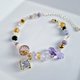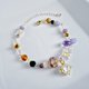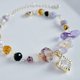 This bracelet features a sparkling square charm as an accent, nestled between wine-red lampwork beads filled with shimmering contents and mini tumbled pink amethyst with citrine in a sophisticated, soft purple hue.